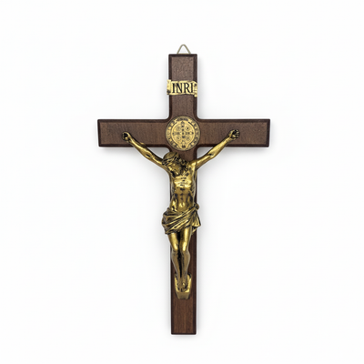 Crucifixo de Madeira São Bento Mesa 30 cm